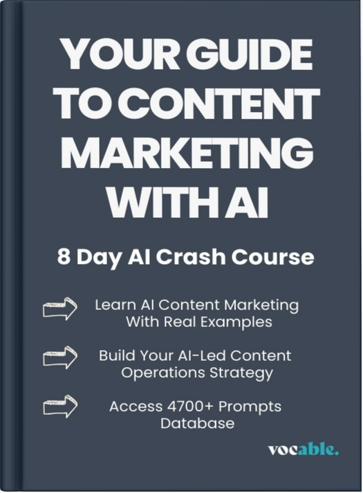 Day 1. 3 Important Things You Should Know About Content Marketing With AI.Day 2. How This DevOps Strategy Can 2X Your Content Ops EfficiencyDay 3. These 4 Mistakes Will Ruin Your Content Marketing Strategy (And How To Solve Them With AI).Day 4. Everything You Need To Know About AI-Led Content Marketing (5 Steps To Integrate AI)Day 5. 4 Best Practices For Streamlining Your Content Lifecycle With AI.Day 6. Bonus: How To Turn 1 Blog Into 10 Pieces Of Content Using AI.Day 7. Bonus: How To Create Your Own Prompts (Also Get 4700+ ChatGPT Prompts For Free)Day 8. Bonus: 15 AI Tools I Personally Love Using (Steal This List)